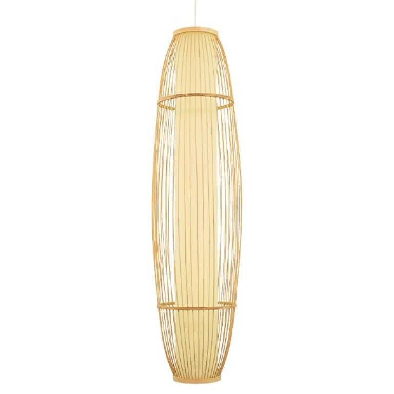 DE PARIS 00892 Vintage Κρεμαστό Φωτιστικό Οροφής Μονόφωτο Καφέ Ξύλινο Bamboo Φ30 x Υ120cm