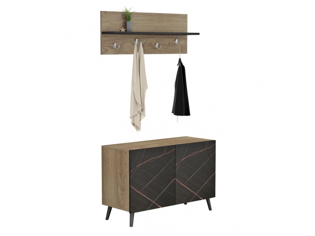 Ένα σετ μελαμίνης με βολικές διαστάσεις σε χρώμα ΦΥΣΙΚΟ ΞΥΛΟΥ-ΜΑΥΡΟ ΜΑΡΜΑΡΟ που θα σας ενθουσιάσει, μιας και σας επιτρέπει να διατηρείτε τον χώρο υποδοχής σας οργανωμένο και τακτοποιημένο.