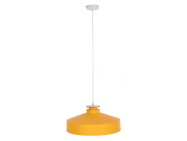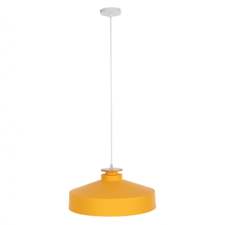 Πρόκειται για ένα φωτιστικό με ΚΙΤΡΙΝΟ ρηχό μεταλλικό καπέλο σε σχήμα καμπάνας με λεπτομέρεια ξύλου στην κορυφή του φωτιστικού.