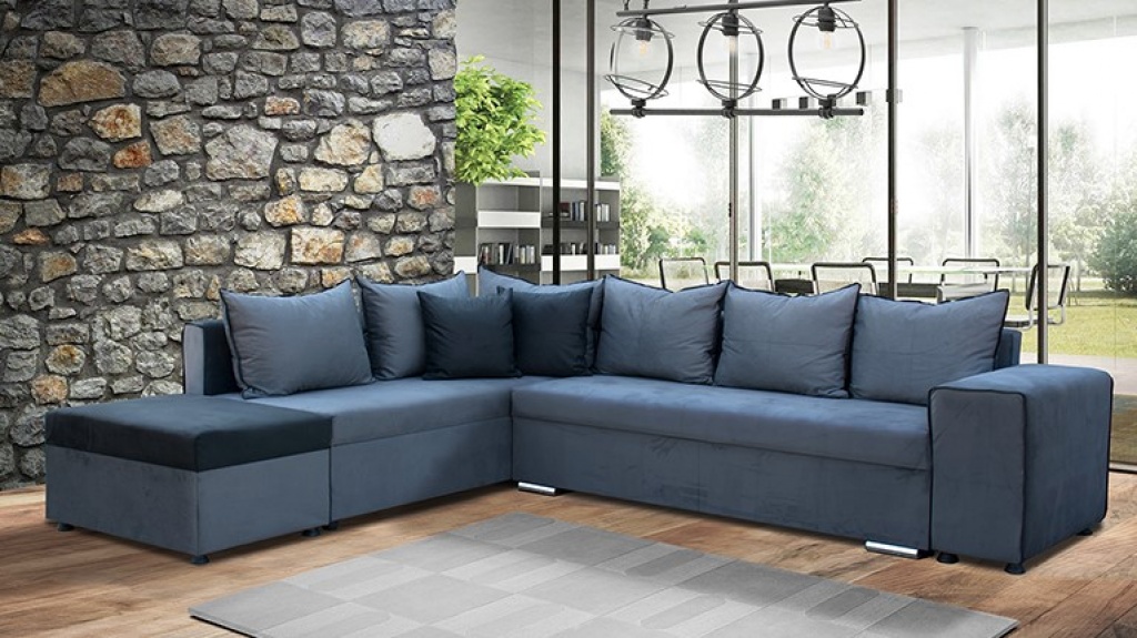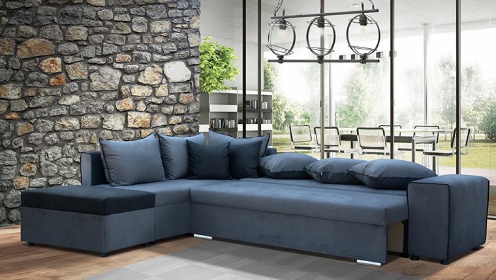 Γωνιακός καναπές κρεβάτι με τρεις αποθηκευτικούς χώρους.