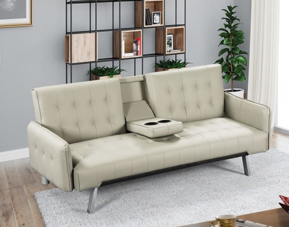 Καναπές - κρεβάτι με εύκολο άνοιγμα και δύο θέσεις για ρόφηματα.