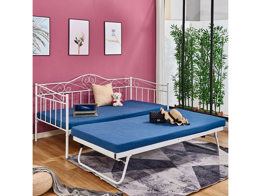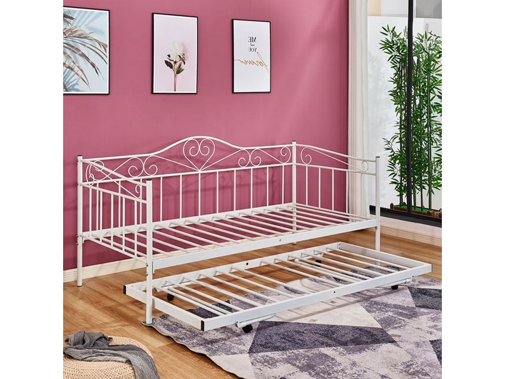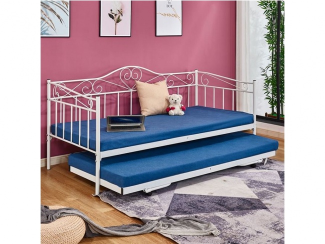 Καναπές - κρεβάτι με extra βοηθητικό κρεβάτι κατασκευασμένο από μεταλλικό σκελετό σε λευκή απόχρωση, στιβαρής κατασκευής.