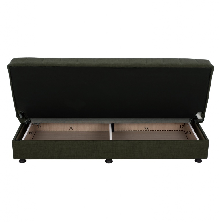 Έχει διπλή χρησιμότητα ως καναπές και κρεβάτι, έχει αποθηκευτικούς χώρους, και δεν διαθέτει μπράτσα με αποτέλεσμα να επιτείνει την άνεση που προσφέρει ως κρεβάτι.