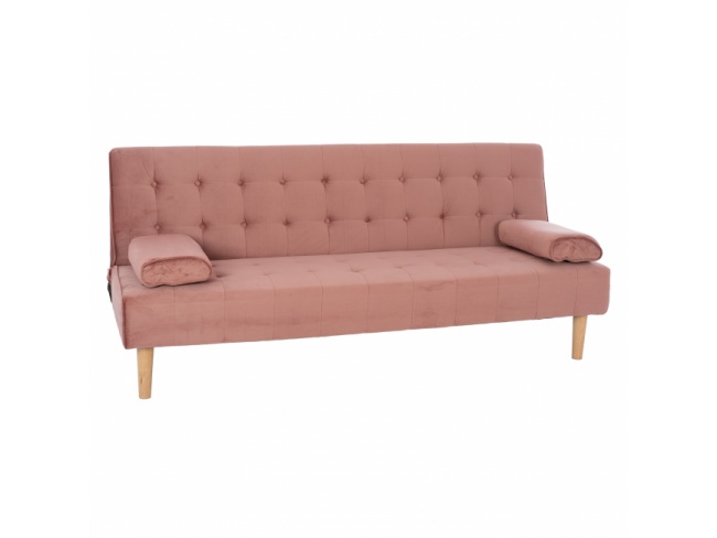 Καναπές κρεβάτι, επενδεδυμένος με βελούδινο ύφασμα σε σάπιο μήλο απόχρωση.