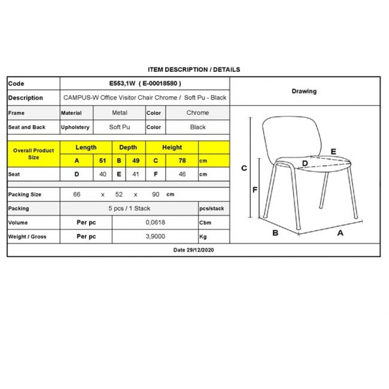 Η δυνατότητα στοίβαξης της Καρέκλας CAMPUS σας προσφέρει ευκολία κατά την μεταφορά και την αποθήκευση.