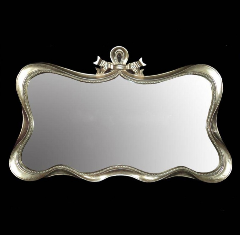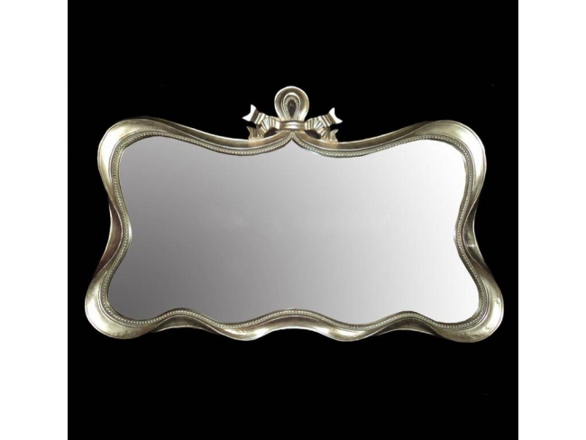 Κλασσικός παραλληλόγραμος καθρέπτης πατιναριστός επενδυμένος με φύλλο χρυσού και ασήμι  με περίτεχνο σχέδιο με κορνίζα σε σχήμα φιόγκου.