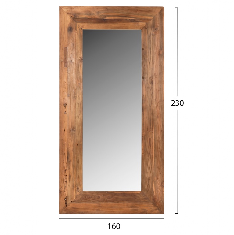 Το design του είναι κλασσικό με τον καθρέφτη να βρίσκεται σε ένα μεγάλο και φαρδύ ορθογώνιο πλαίσιο από ανακυκλωμένο ξύλο ΤΕΑΚ σε φυσικό χρώμα.