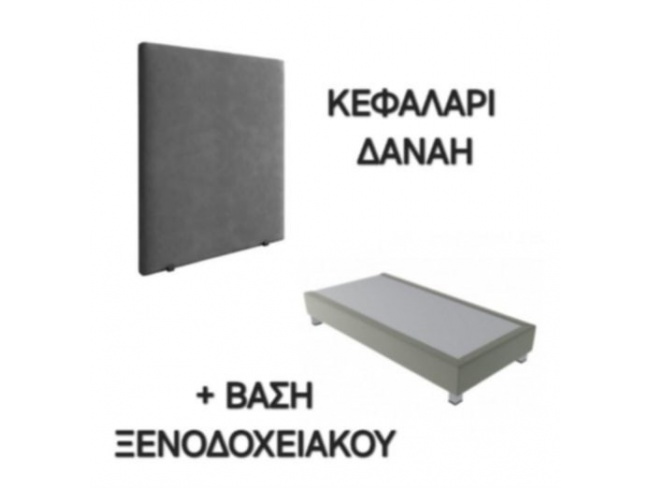 Κεφαλάρι Δανάη και βάση κρεβατιού ντυτή ξενοδοχειακού τύπου, με ύφασμα ελληνικής κατασκευής, όπου μπορείτε να επιλέξετε χρώμα υφάσματος, ώστε να δημιουργήσετε το δικό σας στυλ και αισθητική στο υπνοδωμάτιό σας.