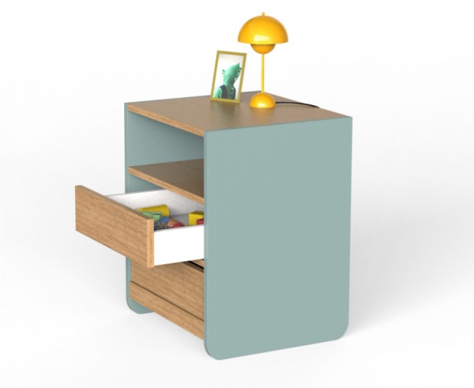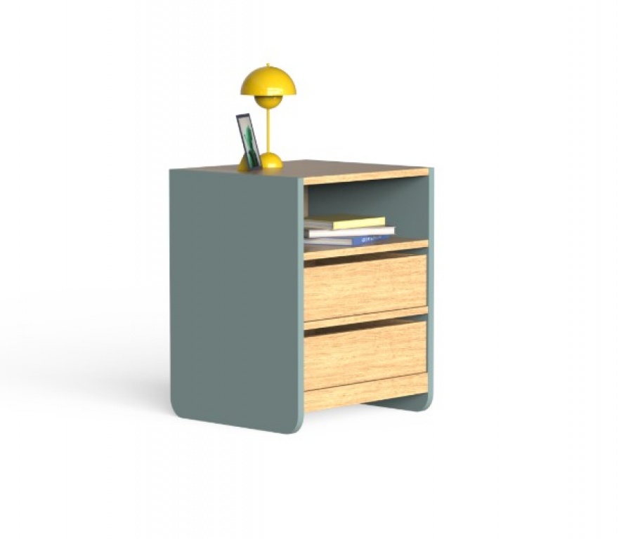 Κομοδίνο μελαμίνης με δύο συρτάρια εξαιρετικής ποιότητας.
