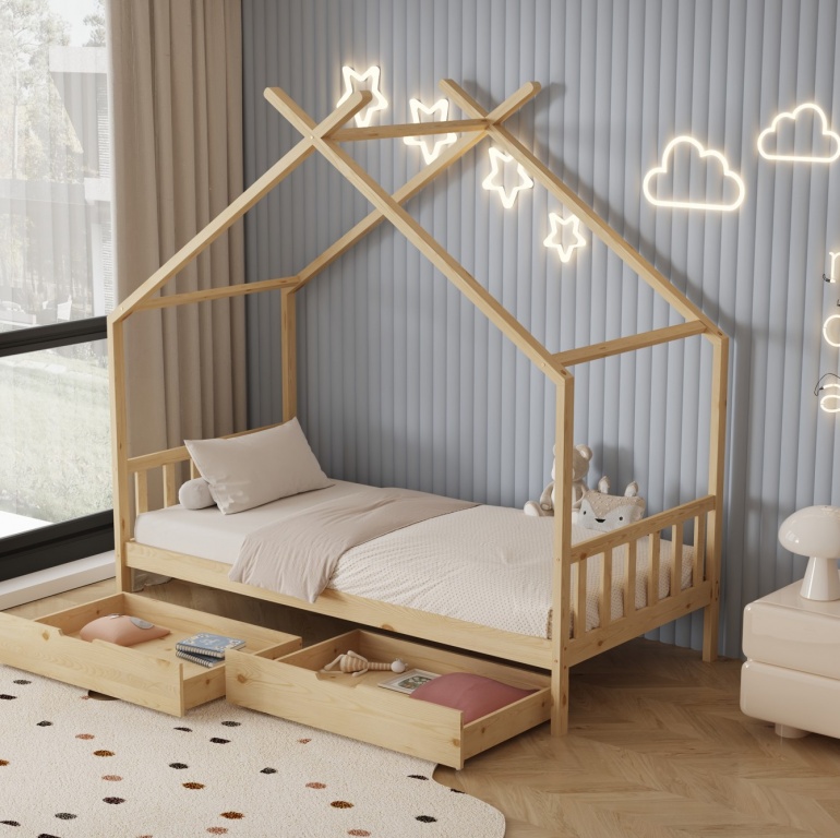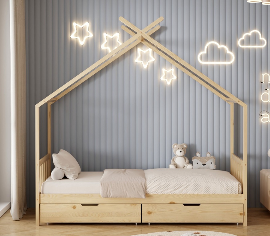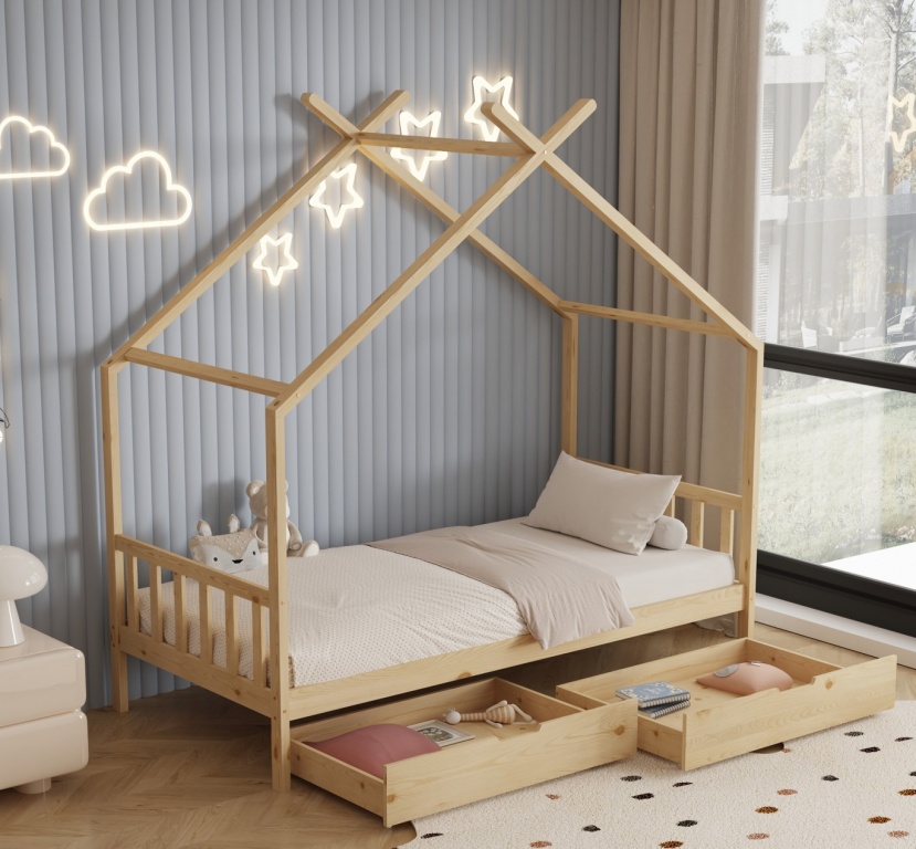 Ολόκληρο το κρεβάτι έχει σχήμα σπιτιού, που θα δώσει μια ευχάριστη, «ζεστή», και παιχνιδιάρικη όψη σε κάθε παιδικό δωμάτιο.
