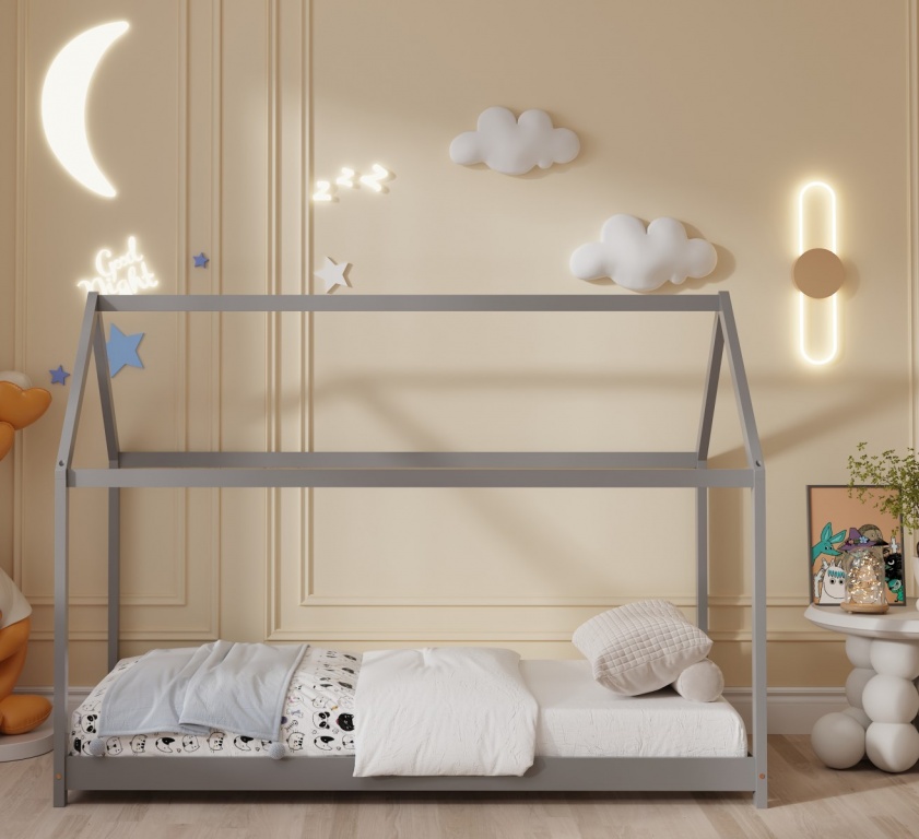 Ολόκληρο το κρεβάτι έχει σχήμα σπιτιού που θα δώσει μια ευχάριστη, «ζεστή», και παιχνιδιάρικη όψη σε κάθε παιδικό δωμάτιο.