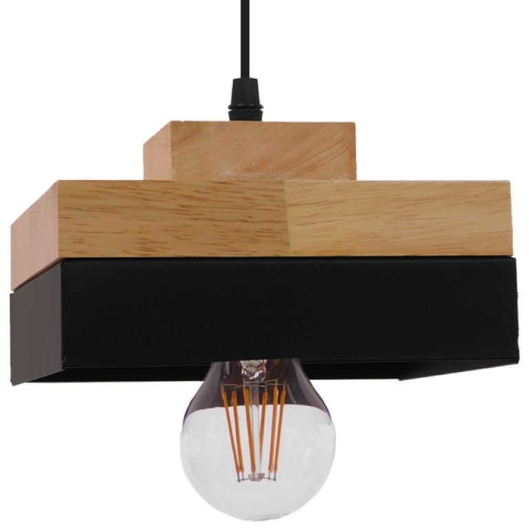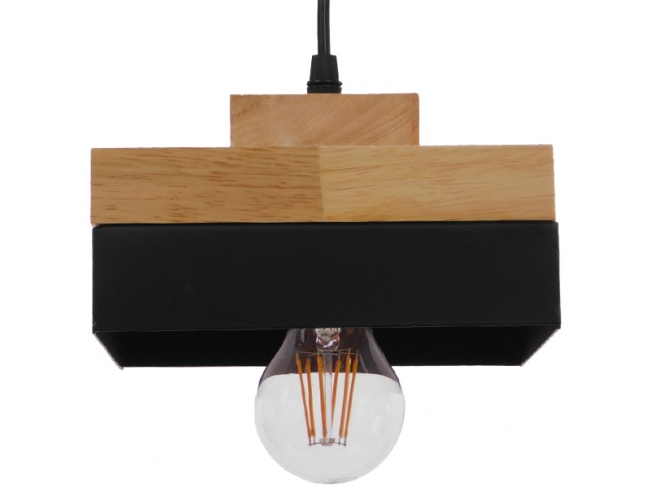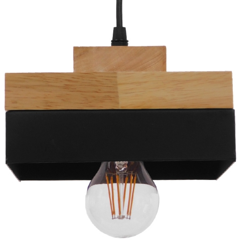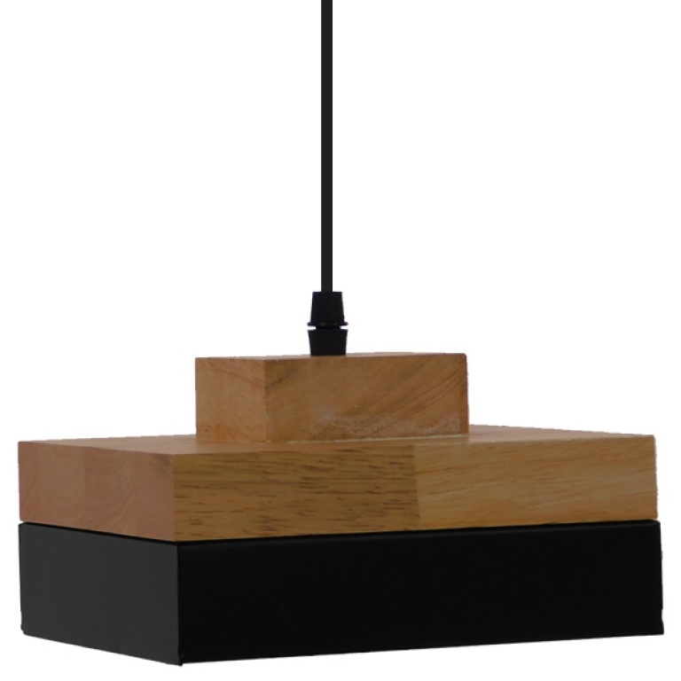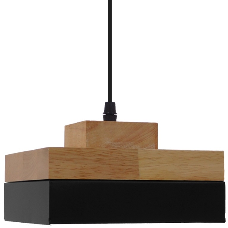 LAOTH 01234 Μοντέρνο Κρεμαστό Φωτιστικό Οροφής Μονόφωτο Μαύρο Μεταλλικό με Φυσικό Ξύλο Καμπάνα Φ18 x Y11.5cm
