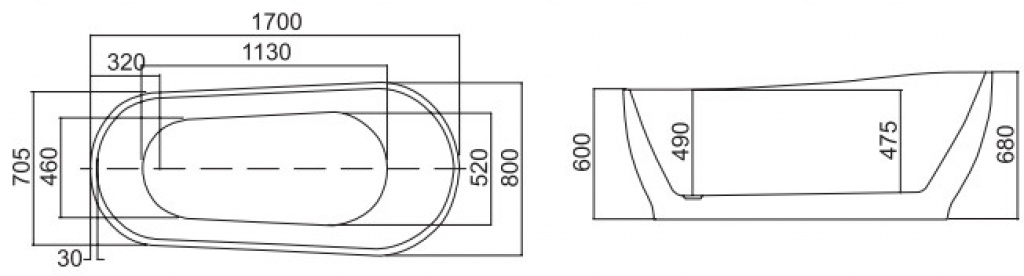 Ακρυλική μπανιέρα ελεύθερης τοποθέτησης κατασκευής τύπου «sandwich» επενδυμένο εσωτερικά και εξωτερικά με υψηλής ποιότητας ακρυλικό φύλλο 5mm. Φέρει slim βαλβίδα pop-up με υπερχείλιση.