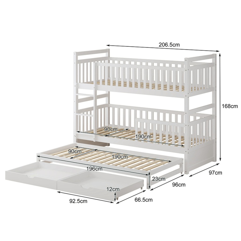 Ωστόσο, αυτή η κουκέτα ξεχωρίζει για το γεγονός ότι έχει και ένα ακόμα κρεβάτι που είναι συρόμενο και τοποθετείται στο κάτω μέρος της κουκέτας, όπως και 2 συρτάρια στα οποία μπορείτε να τοποθετήσετε οτιδήποτε χρειαστεί.
