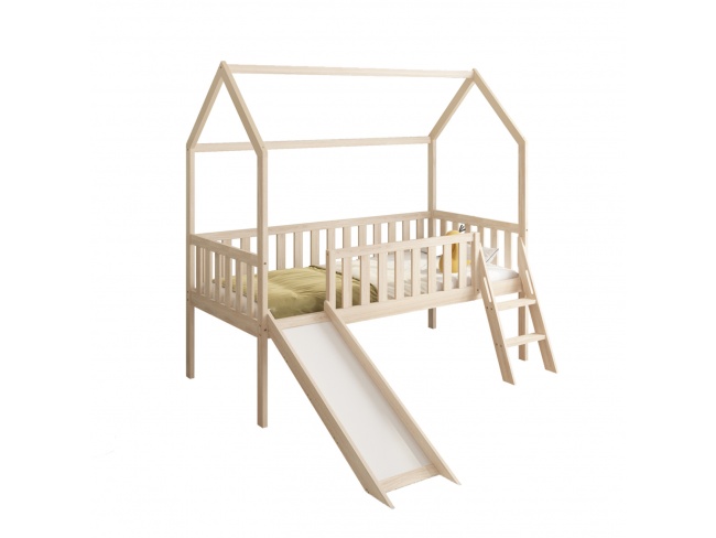 Ολόκληρο το κρεβάτι είναι υπερυψωμένο και έχει σχήμα σπιτιού αλλά αυτό που κάνει τα παιδιά να το λατρέψουν είναι ότι διαθέτει τσουλήθρα προσφέροντας ατελείωτες ώρες παιχνιδιού και χαράς.