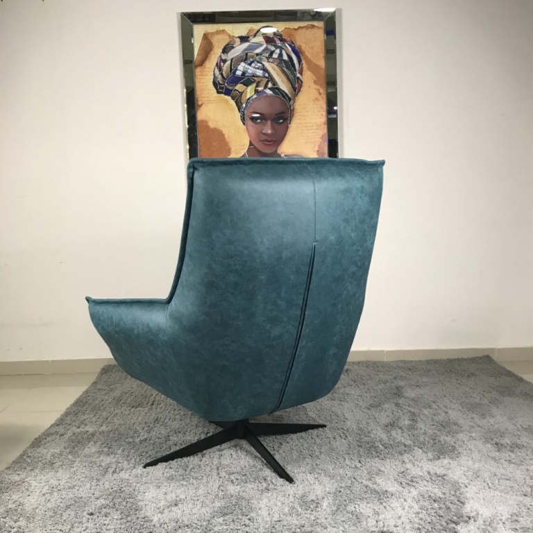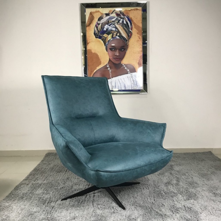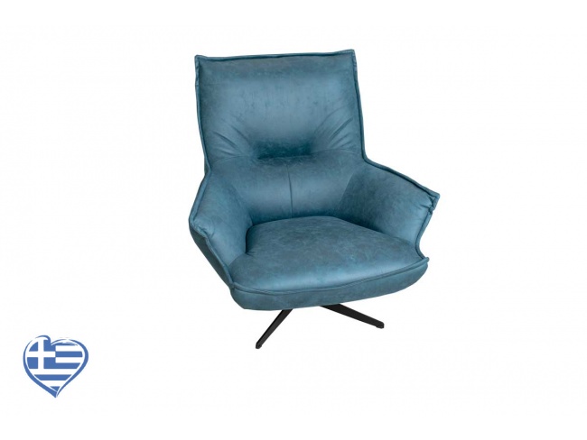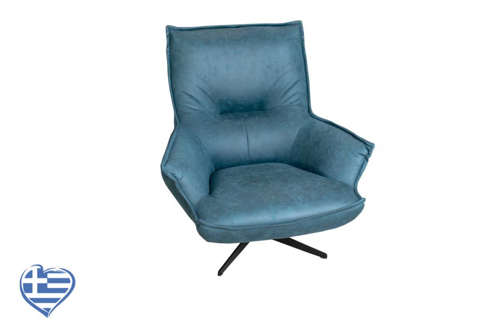 Μοντέρνα πολυθρόνα με περιστρεφόμενη βάση Νο 29, ελληνικής κατασκευής με δυνατότητα επιλογής σε ύφασμα και σε χρώμα, με μαύρα μεταλλικά πόδια.