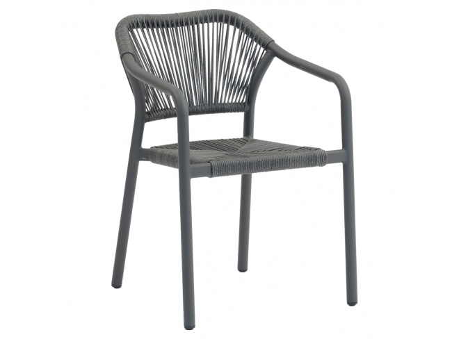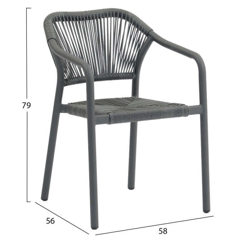 Ο σχεδιασμός της είναι κλασσικός με πλάτη και κάθισμα με πλέξη από P.E. Rattan σε ΣΚΟΥΡΟ ΓΚΡΙ χρώμα.