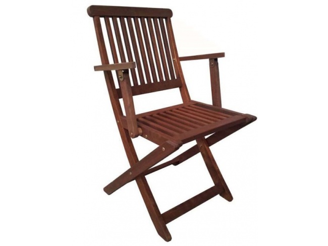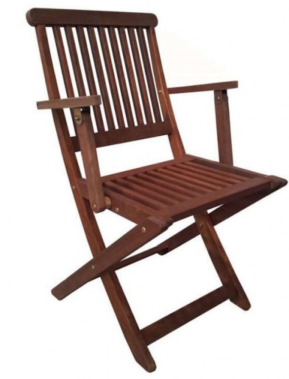 H καρέκλα διαθέτει μπράτσα για μεγαλύτερη άνεση και είναι κατάλληλη για χρήση σε εξωτερικούς χώρους όπως ένας κήπος ή μία βεράντα.