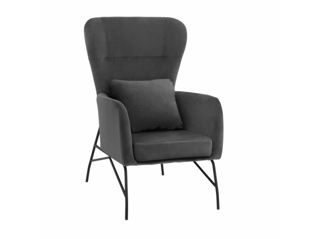Σας παρουσιάζουμε την μπερζέρα, σε γκρι χρώμα με μεταλλικά πόδια σε μαύρο χρώμα.