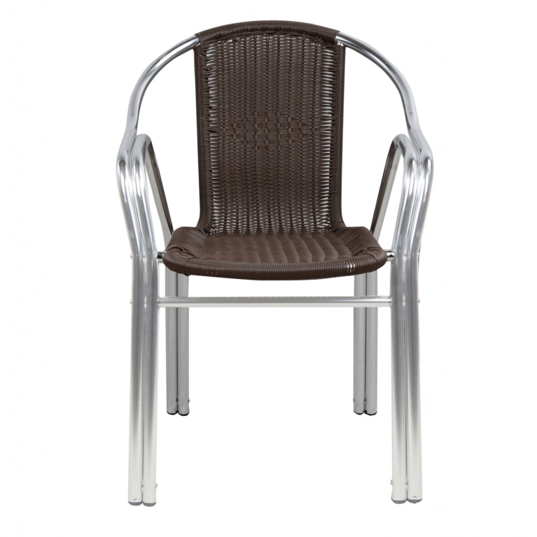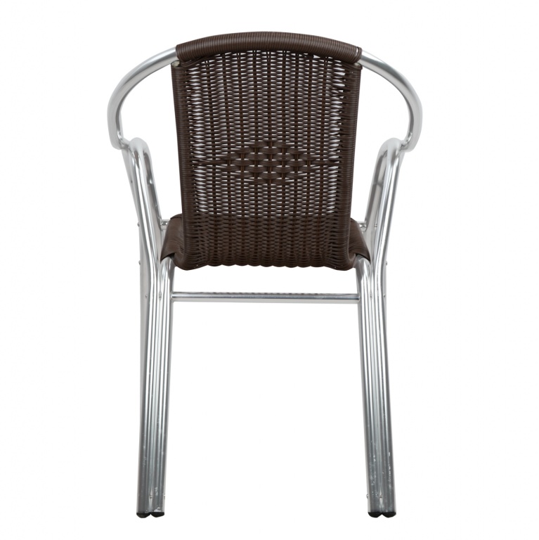 Πολυθρόνα NOEL, εξωτερικού χώρου με σκελετό από διπλό αλουμίνιο και καφέ rattan pvc μεγάλης αντοχής σε ήλιο και βροχή.