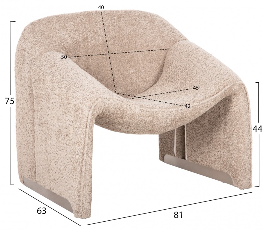 Το χαρακτηριστικό που κάνει αυτή την πολυθρόνα να ξεχωρίζει είναι οι φουτουριστικές καμπύλες του σκελετού που σχηματίζουν την αναπαυτική πλάτη και τα μπράτσα, ενώ όλη η κατασκευή δίνει την εντύπωση ότι αιωρείται στον χώρο.