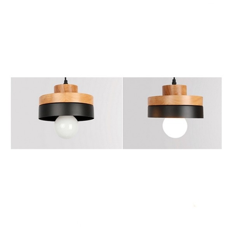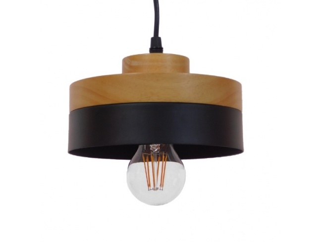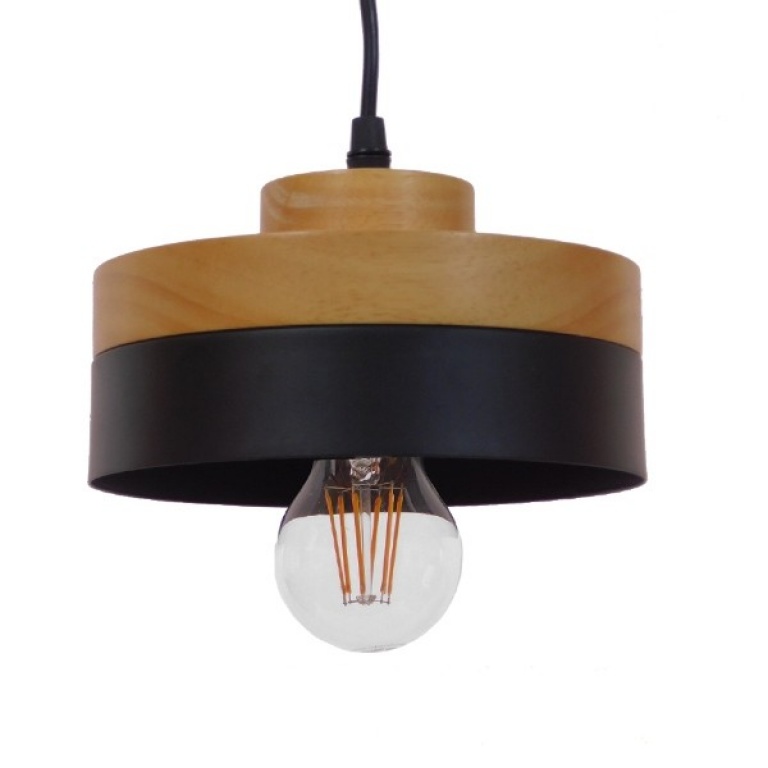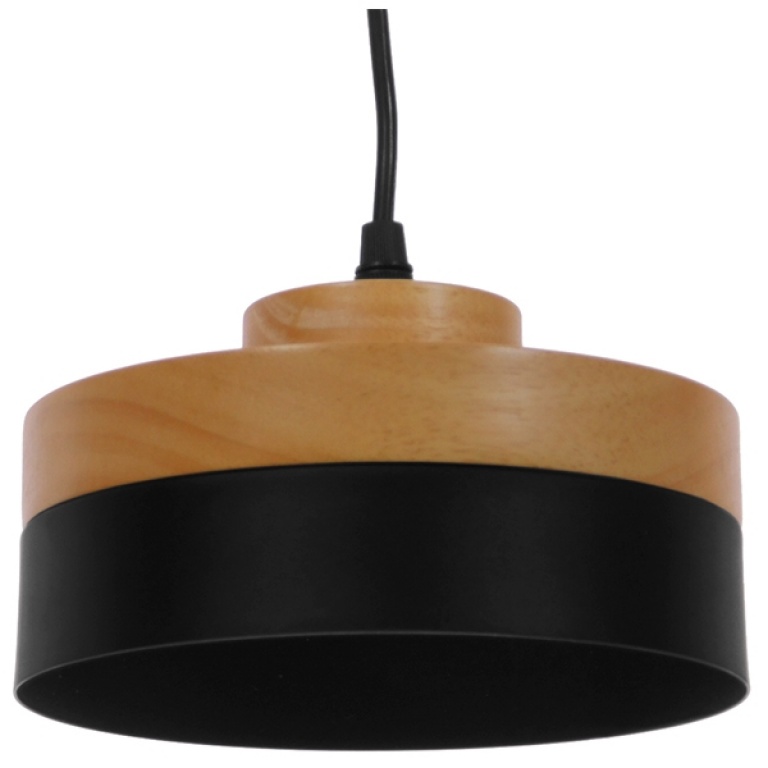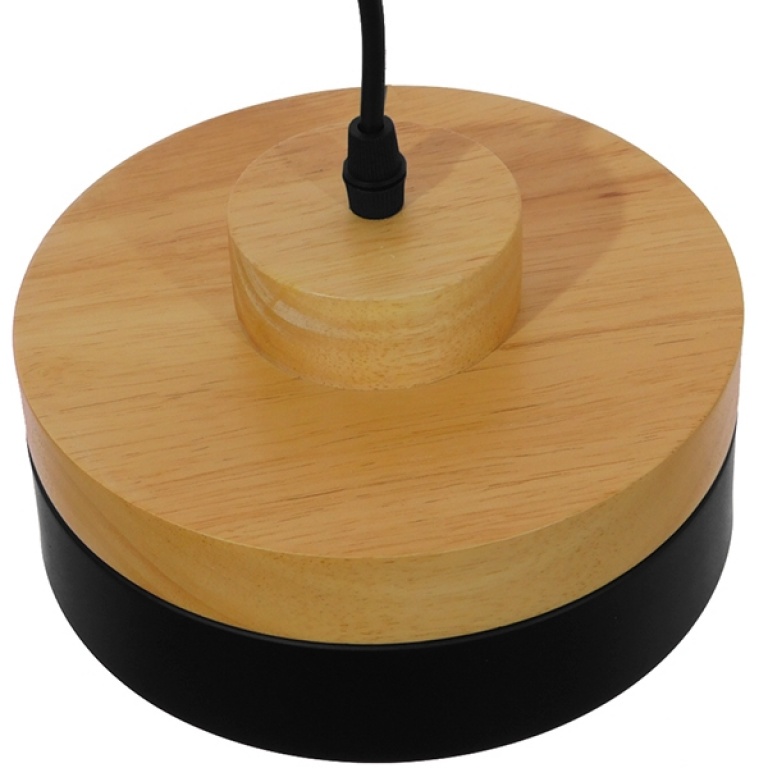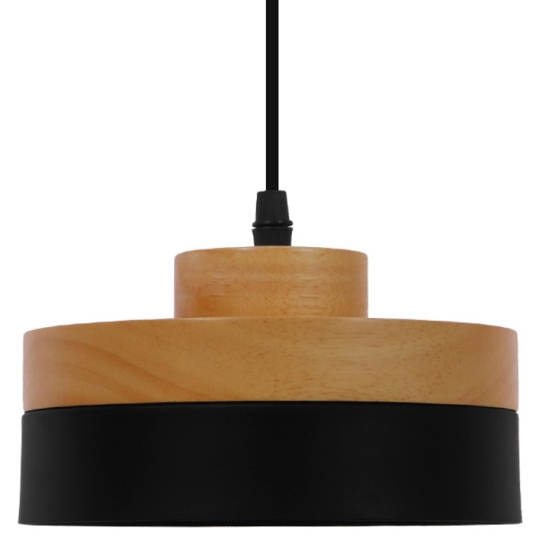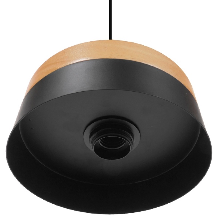 RUHIEL 01233 Μοντέρνο Κρεμαστό Φωτιστικό Οροφής Μονόφωτο Μαύρο Μεταλλικό με Φυσικό Ξύλο Καμπάνα Φ18 x Y12cm