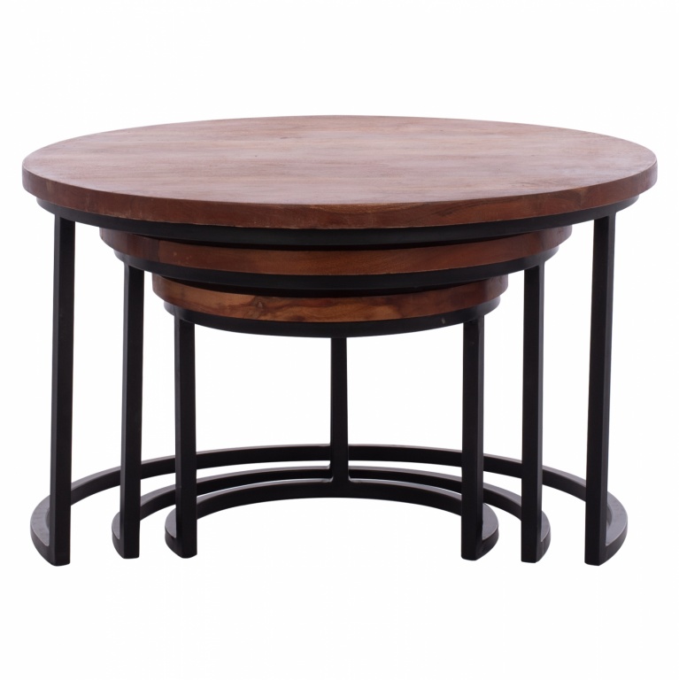 Σετ ΖΙΓΚΟΝ που αποτελείται από 3 τραπέζια σε ολοστρόγγυλο σχήμα με 3 μαύρα μεταλλικά πόδια σε διάταξη ημικυκλικής βάσης.