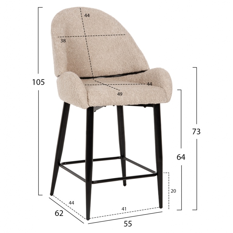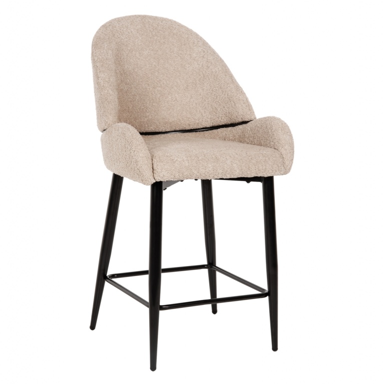 Το σκαμπό είναι λιτό, ποιοτικό και κομψό στην όψη, και σίγουρα τραβάει τα βλέμματα με το ύφασμα μπουκλέ που είναι επενδυμένο.