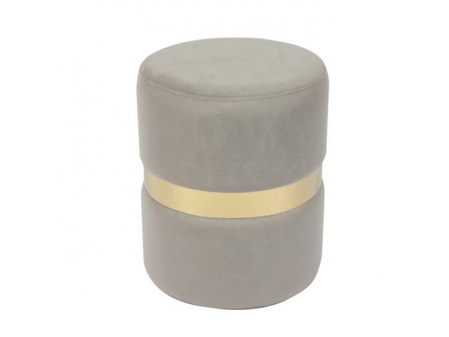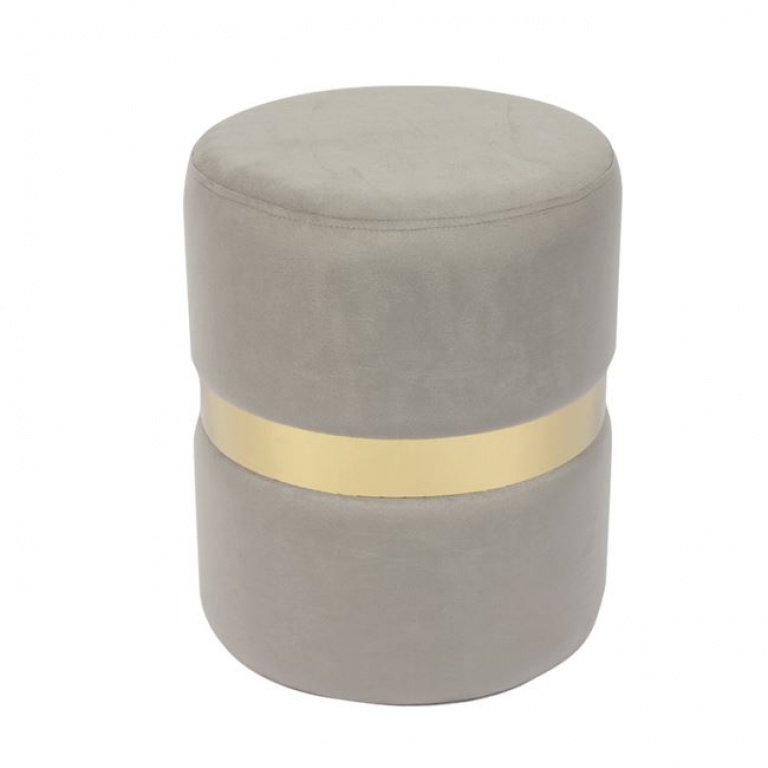 Ένα σκαμπό/πουφ χρυσό με ύφασμα σε χρώμα γκρι Velure.