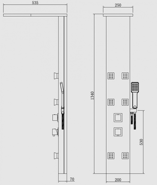 Στήλη υδρομασάζ από υλικό ABS χρωμιωμένο
