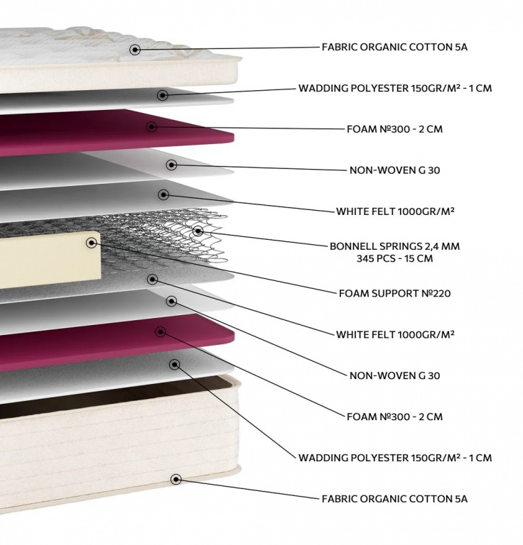 Σκληρό στρώμα με ελατήρια Bonnell, σχεδιασμένο για ενισχυμένη στήριξη και μεγαλύτερη αντοχή.
