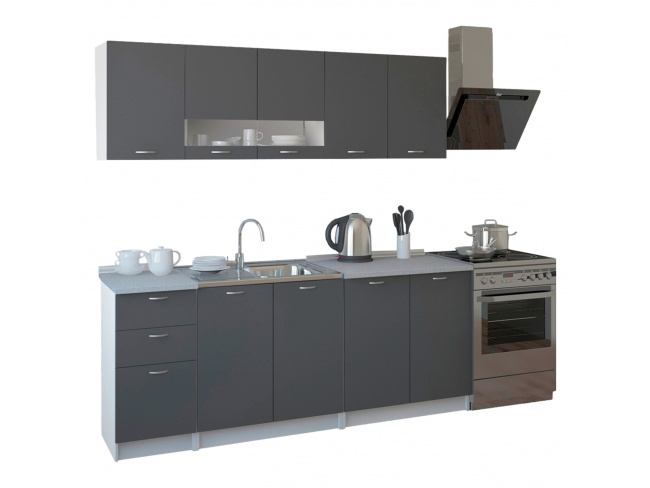 Αν αναζητάτε μια οικονομική λύση, σε ευθεία κουζίνα, κατασκευασμένη από εξαιρετικής ποιότητας μελαμίνη, πάχους 16mm, με κλειστούς αποθηκευτικούς χώρους, ντουλάπια, συρτάρια, στα οποία μπορείτε να αποθηκεύσετε όλα τα είδη σερβιρίσματος, μαχαιροπήρουνα και τα σκεύη κουζίνας, τότε έχετε βρει το κατάλληλο προϊόν.