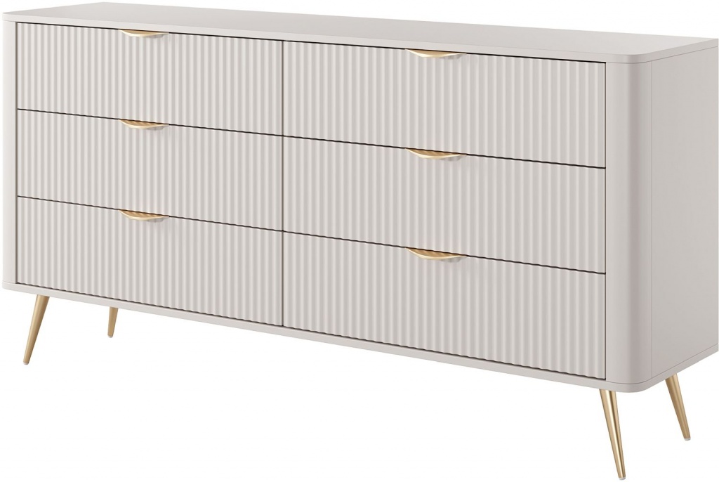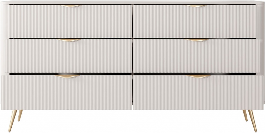 Ο μοντέρνος, μινιμαλιστικός σχεδιασμός σε συνδυασμό με τη φρεζαρισμένη πρόσοψη κάνει τη συρταριέρα να φαίνεται εξαιρετικά κομψή.