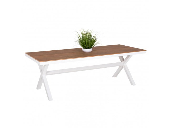 Το TAWNEE είναι ένα μεγάλο ορθογώνιο τραπέζι για εξωτερικούς χώρους με σκελετό αλουμινίου σε χιαστί διάταξη ποδιών που συνδέονται με μια μπάρα αλουμινίου και έχει ΛΕΥΚΟ χρώμα.