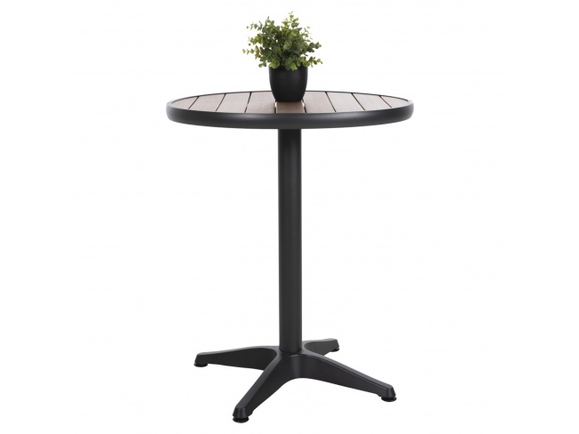 Η επιφάνεια είναι από πλάκες polywood σε ΦΥΣΙΚΟ χρώμα ξύλου μονταρισμένες σε ένα φαρδύ «δαχτυλίδι» αλουμινίου, και στηρίζεται σε μια 4-νυχη κολώνα.