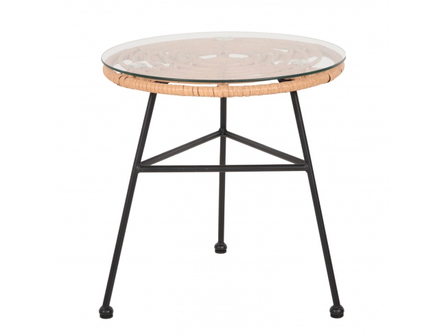 Το επάνω μέρος του σκελετού είναι επενδυμένο με συνθετικό Rattan σε ΜΠΕΖ χρώμα και σε κυκλική διάταξη, έτσι ώστε να τοποθετηθεί το στρογγυλό γυαλί ασφαλείας της επιφάνειας.