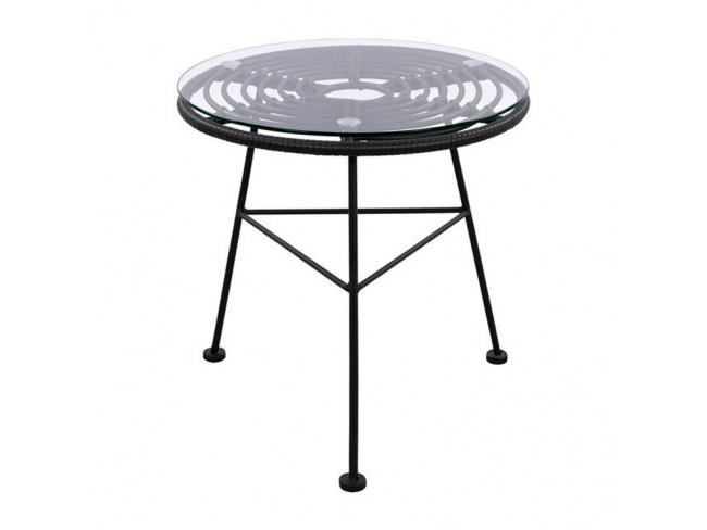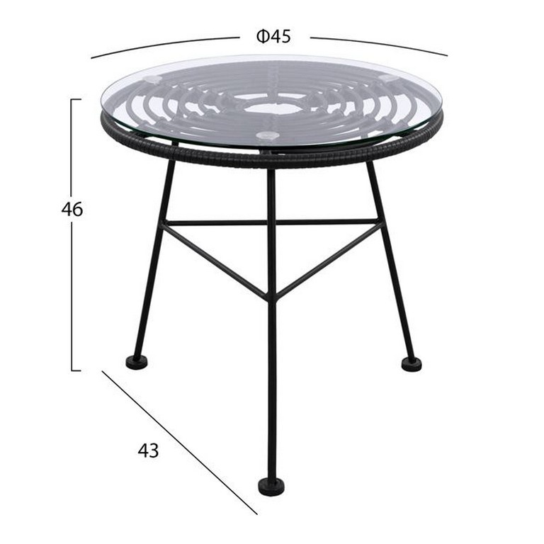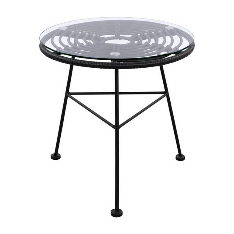 Μοντέρνο τραπέζι εξωτερικού, αλλά και εσωτερικού χώρου, κατασκευασμένο από μεταλλικό σκελετό σε μαύρη απόχρωση και επιφάνεια επενδυμένη με πλεκτό wicker σε μαύρη απόχρωση.