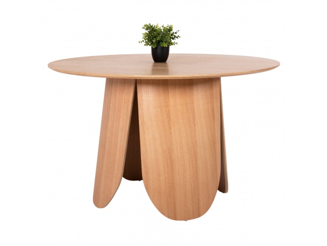 Το DENTY είναι ένα στρογγυλό τραπέζι για την τραπεζαρία, με φαλτσοκομμένη επιφάνεια από MDF με καπλαμά δρυός σε ΦΥΣΙΚΟ χρώμα ΔΡΥΟΣ.