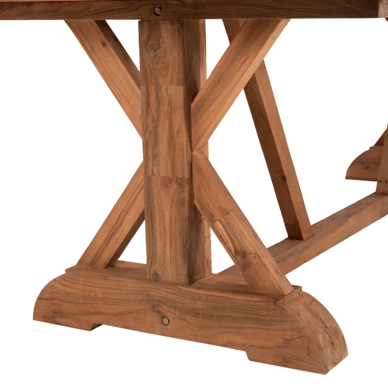 Το KRONOS είναι ένα μεγάλο τραπέζι ορθογώνιο, κατασκευασμένο εξολοκλήρου από μασίφ ξύλα ΤΕΑΚ στο φυσικό τους χρώμα.
