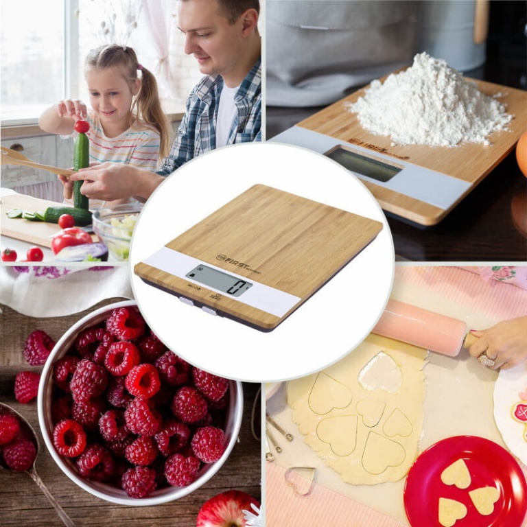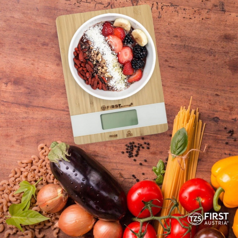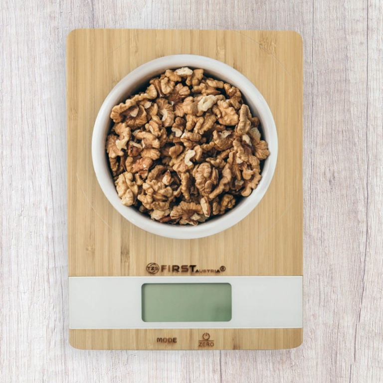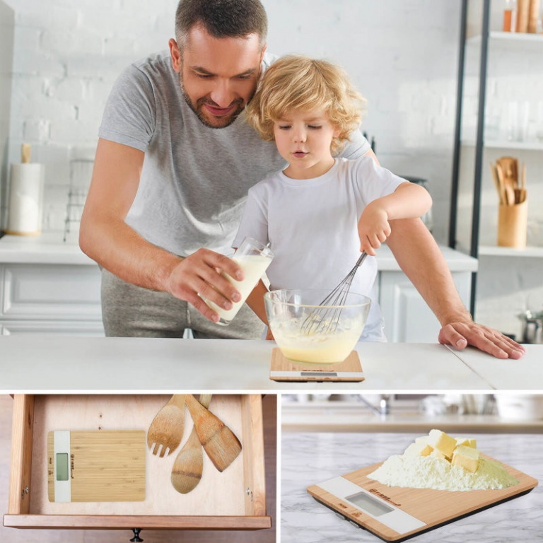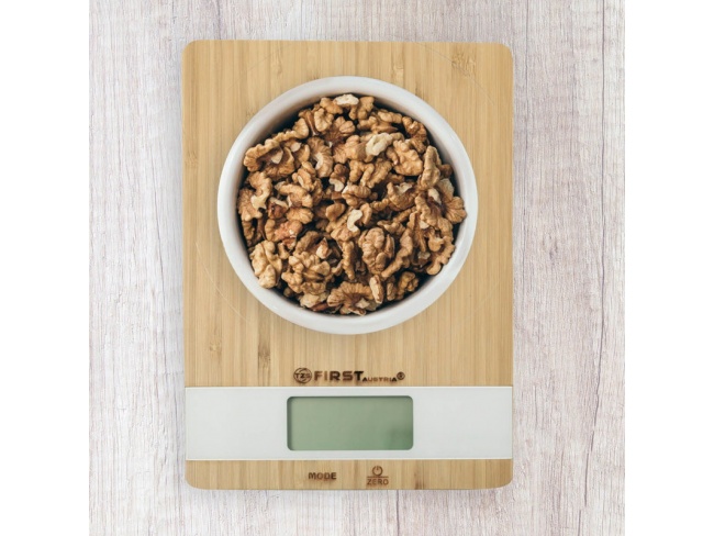 Ψηφιακή ζυγαριά κουζίνας με πλάκα μπαμπού.