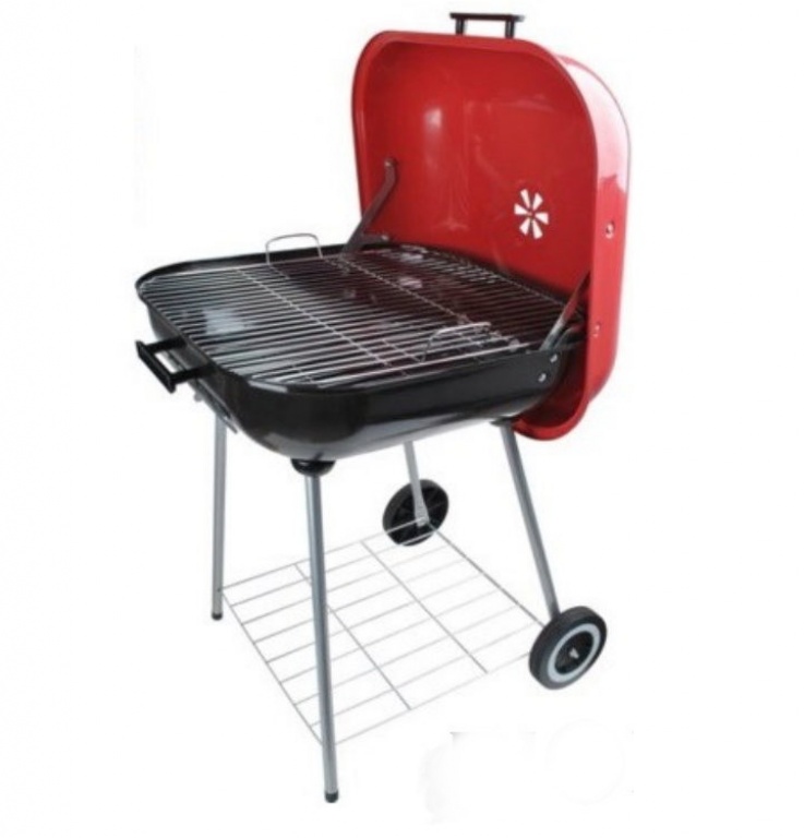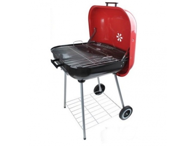 Ψησταριά τετράγωνη με κόκκινο καπάκι, με σχαράκι απο κάτω για τοποθέτηση πραγμάτων.